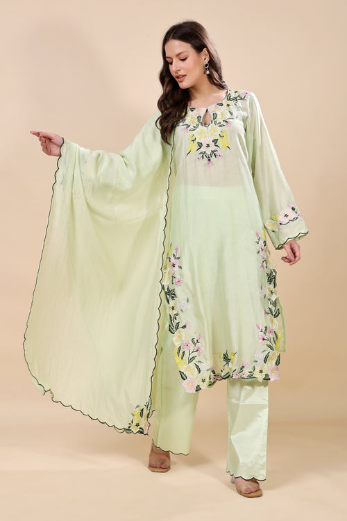 Mint Green Chanderi Embroidered Kurta Set (Sample)